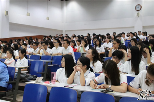 接着,本科新生班主任闻翔老师代表2018级新生班主任发言。他提到,老员工活是围绕“智识生活”与“团体生活”两方面的进步与成长。他鼓励各位新生要将学习视为天职并处理好集体的各种关系。