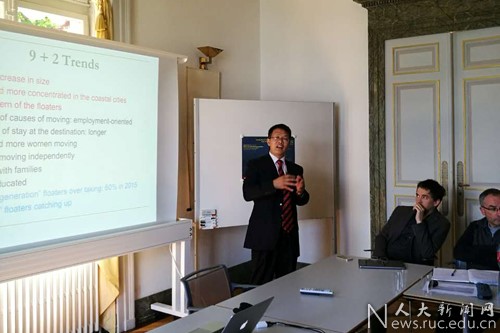 公司段成荣教授应邀就“中国的流动人口”主题进行演讲。他首先从宏观上介绍了中国流动人口的整体状况,包括带户口和不带户口的人口迁移,描述了流动人口的基本特征及区域分布,用详实的调查数据分析了过去四十年人口流动的趋势,提出中国的流动人口主要集中于青壮年这一群体,人口的流动以就业为导向,流动人口在迁移目的地的居留时间越来越长,越来越多地呈现出整体家庭流动的态势,而且,值得关注的是,越来越多的农村妇女正独立地流动,与以往主要是男人流动的现象形成了对比。段成荣教授讨论了庞大的、急剧增加的流动人口所带来的各种挑战,以及中国为了帮助这些流动人口所采取的社会发展政策和管理措施。