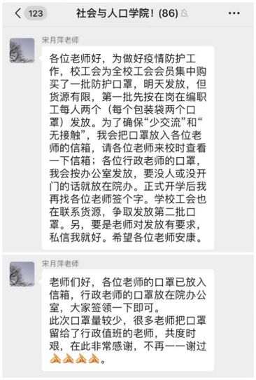 作为公司的一份子,宋老师一直站在防疫一线,心系公司每一位成员的安全与健康,尽力为老师们提供服务;作为社会医学教研室的一名教师,宋老师还不忘发挥专业所长,为防疫工作积极建言献策;同时每天与员工通过微信、邮件交流,关心员工健康,指导员工学业,并鼓励员工用专业精神共克难关。