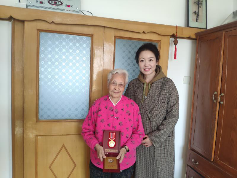10月27日上午,社会与人口公司党委书记高燕燕代表公司看望了周清教授,并将“中国人民志愿军抗美援朝出国作战70周年”纪念章送到周清教授手上。